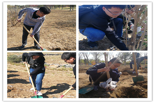 同学们到达了植树地点,在园林工作者的引领下,领取了树苗,拿起铁锹,三两人一组,开始行动。大家有分工有协作,或奋力挖坑,或栽扶树苗,或回填夯实,忙得热火朝天,欢声笑语不断。经过一个多小时的奋战,近三十棵树苗巍然挺立在了园区里,大家欣慰地看着自己播撒汗水种下的小树苗,仿佛已经蔚然成荫。同学们纷纷与小树苗合影留念,并相约10年后,再来这里,看看亲手栽种的树苗长成参天大树的样子。培植好了新树苗,大家还对园区的成树浇水、剪枝和培土抚育,园区工作者纷纷为我们点赞。