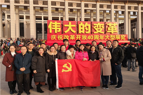 全体党员依次参观了“伟大的变革”“壮美篇章”“关键抉择”“历史巨变”“大国气象”“面向未来”6个主题展区,驻足在一幅幅历史图片、一段段文字视频、一个个实物场景和沙盘模型前,深切感受到40年来党和国家事业发生的历史性变革、取得的历史性成就。陈艳旗同志感慨地说:“我们80后这一代,是祖国改革开放40年发生巨大变迁和社会主义建设取得重大成就的亲历者和见证者,我们感受到了中国共产党的伟大,中华民族的伟大。” 耿德一同志说:“通过观看展览,更加坚定了我们中国特色社会主义的道路自信、理论自信、制度自信、文化自信,我们坚信祖国的明天会更加辉煌灿烂。”