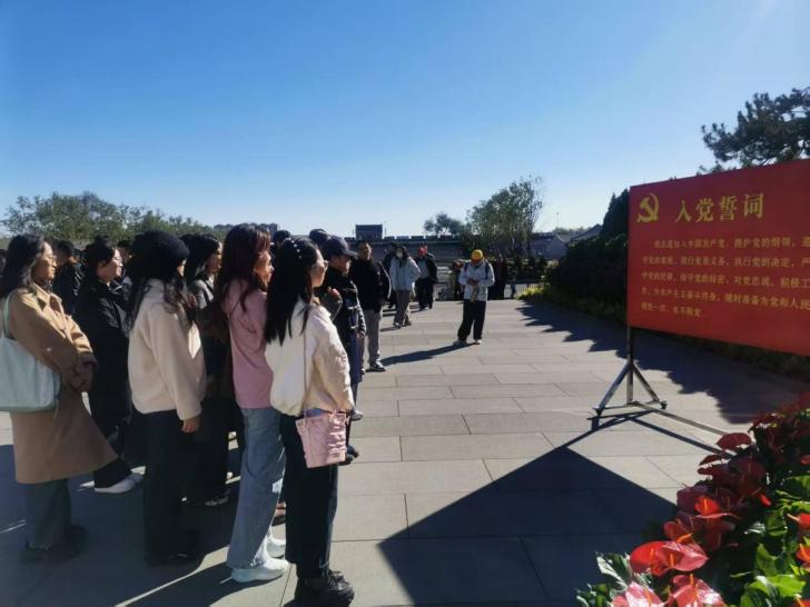 入馆前,同学们在抗日战争纪念馆前重温入党誓词。