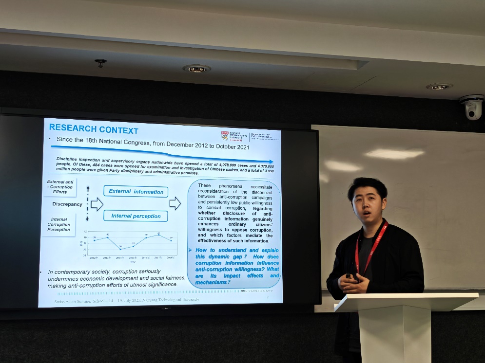 2025年7月14日-19日,我院师生代表团赴新加坡参加在南洋理工大学举办的2025年瑞士-亚洲暑期学校(Swiss-Asian Summer School, SASS)。代表团由杨宏山教授任领队老师,包括博士研究生李海林、崔冠云、冯思远、高非凡四位同学。