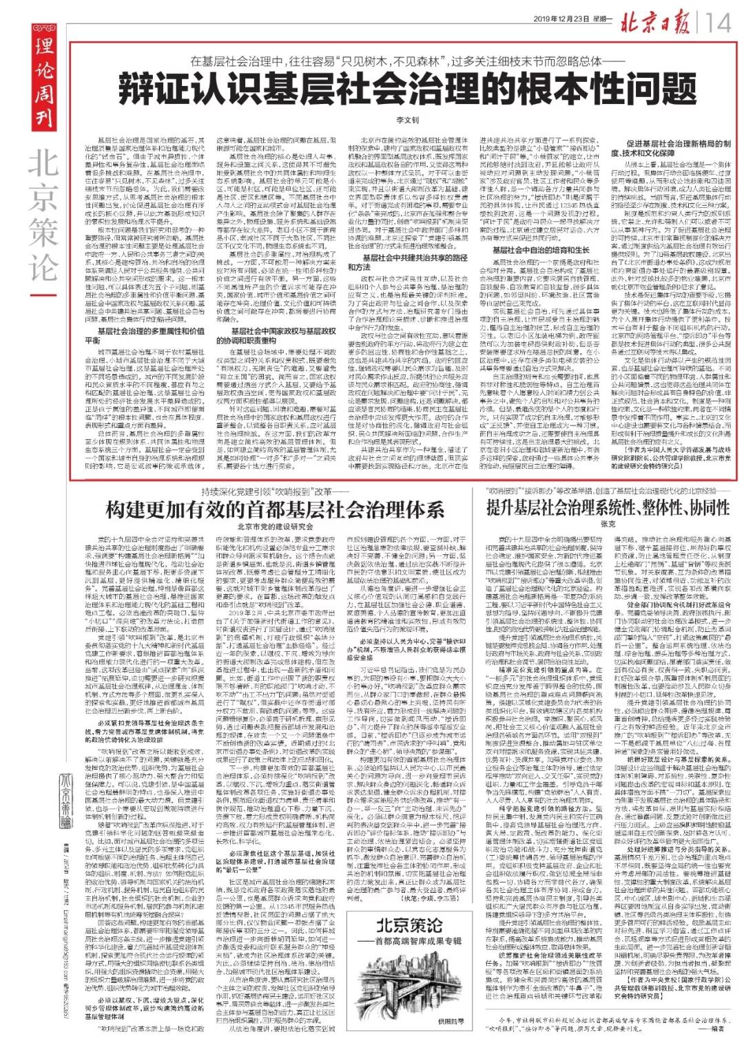 制度是规范和约束人类行为的规则系统,它禁止、允许和强制人们可以或者不可以从事某种行为。良好的治理成长总是与制度成长联系在一起,这也是十九届四中全会主题的核心思想。为了促进基层社会治理的可持续,北京市非常重视制度化的解决方案,通过制度供给为基层社会治理有效运行提供规则。为了加强基层政权建设,北京出台了《北京市街道办事处条例》,这成为规范和约束街道办事处运行的最高级别规章。此外,针对反应比较多的物业难题,北京市正在就《北京市物业管理条例》征求意见。