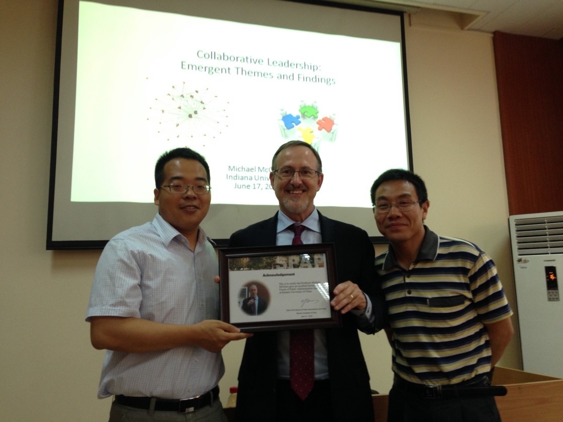 2016年6月17日,美国印第安纳大学环境与公共事务学院执行副院长迈克尔·麦奎尔(Michael McGuire)教授做客我院求是学术讲座,为我院师生作了题为“合作领导:新兴的主题与发现”(Collaborative Leadership: Emergent Themes and Findings)的讲座。学院20余名教师和学生参与了讲座。讲座由我院公共财政与公共政策研究所李文钊副教授主持。