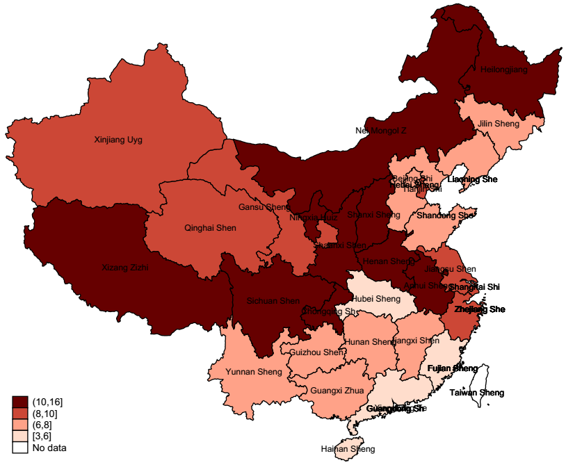 国家央地财政关系的变迁和各地方的多样性,使得央地之间税收分配比例一直在变化。 以(省本级和地方加总留存税收)占(本区域总税收)的比例来看,在过去的15年中走了一个浅底“u”型,并且省之间地区差异明显。并且直接影响着收入预算的执行。