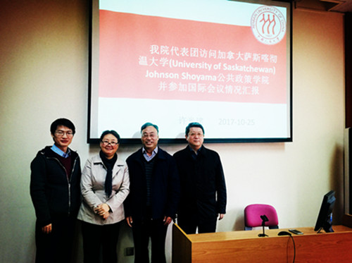 许光建教授重点介绍了此行出访加拿大萨斯喀彻温大学的目的以及取得的成果。此次访问是我院首次与加拿大大学的公共政策学院建立联系。接受访问的萨斯喀彻温大学是加拿大著名的公立大学,其公共政策学院是加拿大公共行政协会(CAPPA)认证的四所学院之一,拥有里贾纳、萨斯卡通两市两个校区。由于有了此次的联系,两院将在下一步签订相关的正式合作协议,协议将涉及合作研究、国际会议、互派学生访问、共同培养MPA硕士 等多个方面的内容。