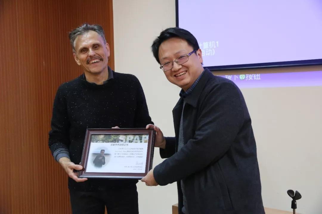 讲座结束后,罗卡教授与参加讲座的师生进行了热烈的互动交流,重点对中国中产阶级定义及社会角色等问题做出了精彩的回应。罗卡教授流利的中文,以及生动精彩的案例分析,为本次讲座增添了不少光彩。之后,秦波教授对本次讲座进行了简要总结,并代表学院向罗卡教授颁发了求是学术讲座证书,对罗卡教授再次表示了感谢。