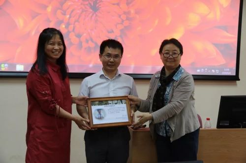 图3 吕萍教授、郐艳丽教授向黄征学研究员颁发求是学术讲座证书