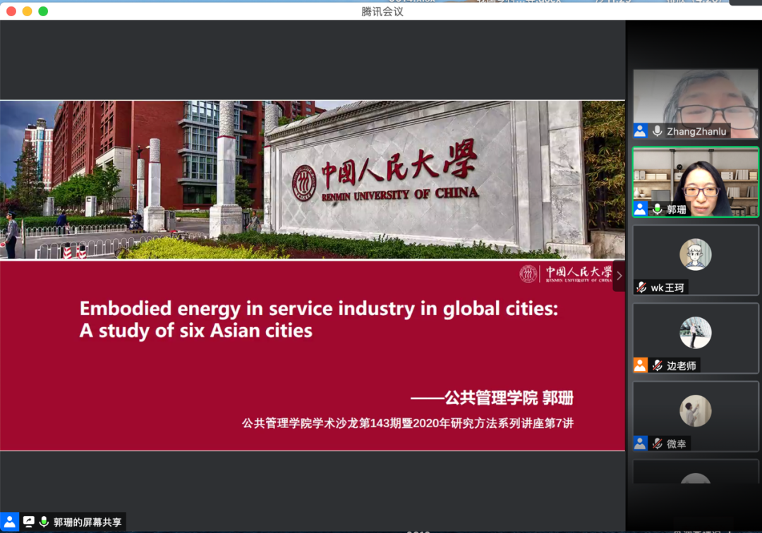 讲座结束之后,在场师生针对本次讲座涉及的研究内容和研究方法进行提问并展开热烈讨论。张占录教授针对城市代谢问题和郭珊老师进行了讨论交流。在场同学就精细化管理、数据库的来源和使用以及疫情背景下的城市健康和公共卫生等方面的问题进行提问,郭珊老师逐一回答了同学们的问题,并鼓励同学们积极思考,期待未来进一步的交流合作。
