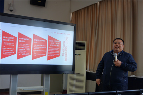 王小虎处长向我院教职工介绍了2017年本科招生工作所面临的新政策及形势,并就如何做好新政策及形势下的本科招生工作同与会人员进行了讨论和交流。