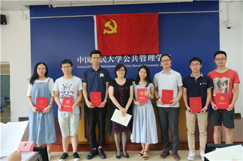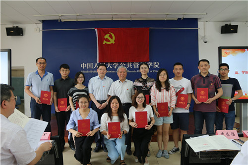学院原院长、党委委员董克用同志,学院副院长丰雷同志为优秀党员颁发证书;学院党委副书记兼副院长孙柏瑛同志为优秀党支部书记和优秀党务工作者颁发证书;学院党委书记李家福同志为先进基层党支部和党建工作样板支部颁发证书。