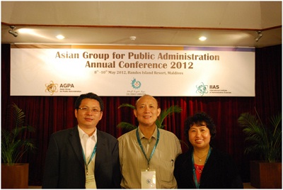 应亚洲公共行政网络秘书处邀请,2012年5月8-12日,我院副院长蓝志勇教授、行政管理学系魏娜教授、公共财政与公共政策研究所杨宏山副教授赴马尔代夫参加亚洲公共行政网络(AGPA)2012年年会。AGPA的宗旨是推进亚洲国家公共行政研究,增进亚洲各国相关学术机构的合作关系。