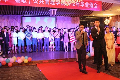 6月22日晚,我院2012年“锦年•骊歌”毕业酒会在峰尚盛宴酒店隆重举行。我院院长董克用教授、党委书记秦惠民教授、副院长蓝志勇教授、副院长严金明教授、党委副书记崔军副教授等学院领导和部分老师,与学院毕业生一起参加了本次酒会。