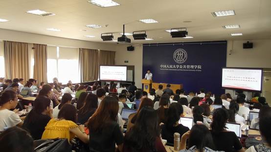 硕士生代表2018级硕博连读学生栗伊萱代表全体硕士生进行了题为《在“实事”里扎根,在“求是”中前行》的发言,从拥有诚信品德、坚守独立人格及做好吃苦准备三个方面分享了个人对于学术规范的理解。他提出:“学术是一场修行,也是一项事业”,并号召各位同学“集聚在人大公管的倡议联盟下,将‘学术探索’作为我们的政策目标,将‘学术规范’提上政策议程,将诚信贯穿整个学术政策过程,用学术互信降低交易成本,用独立人格减少资源依赖,用吃苦精神实现学术渐进主义的突破。”