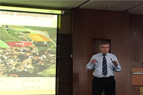 24日上午,师生们在位于青州的国土资源部土地整理培训基地暨中德土地整理与农村发展培训中心与德国汉斯基金会开展农村发展领域的研讨,基金会项目负责人Klaus博士和德方景观规划专家Spindler做了精彩报告,内容涵盖空间规划、土地整理、景观规划和村庄革新,重点介绍了德国在这些领域的方法和程序。我院土管系教授和博士生们针对感兴趣的内容纷纷提问,与德国专家深入讨论,气氛热烈。