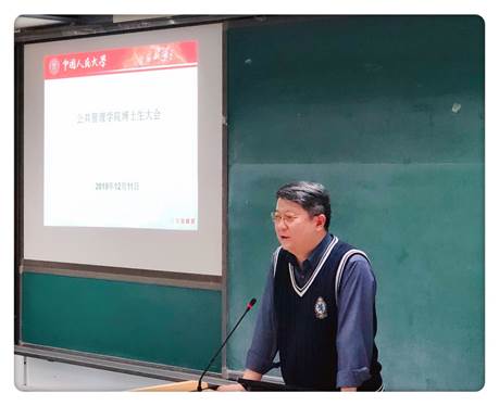崔军副院长代表学院结合实际案例,总结了在博士论文质量和学术规范方面的风险点,要求全体博士生以更高的标准要求自己。他指出,博士论文撰写对于博士生培养至关重要,从综合考试到开题报告和预答辩都需认真严谨对待,做到早动手、早准备;一方面是选题和构思要早,提前与导师就相关领域的前沿问题进行探讨和交流;另一方面是动手撰写要早,在确定好论文题目后要合理规划进度,尽快开始文献阅读与数据收集处理,尽快进入论文撰写状态。