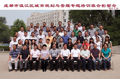 2012年5月28日上午,成都市温江区城市规划与管理高级研讨班开学典礼在我院顺利举行,我院院长董克用教授,成都市温江区委组织部副部长崔永川、温江区规划管理局党组书记兼局长李定葵,我院城市规划与管理系主任叶裕民教授、学院办公室主任兼培训中心主任彭晓妍老师等出席了开学典礼。开学典礼由彭晓妍主任主持。