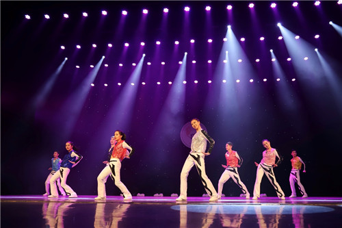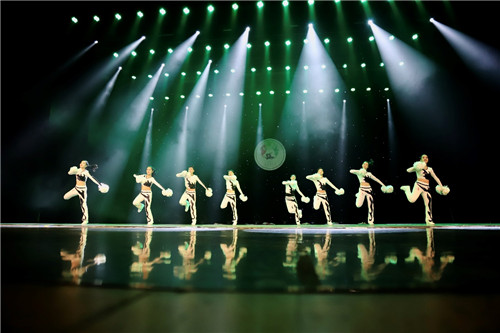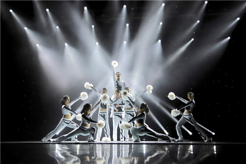 表演开场,公管队员随着音乐分层转身亮相,让人眼前一亮。紧接着是一连串节奏欢快的舞蹈动作,队员们仿佛化身为80年代穿行在大街小巷中的霹雳舞青年。舞至中段,队员集体后退,转身脱下马甲,拾起花球。音乐节奏进一步加快,队员们的舞步转换成了整齐有力的啦啦操舞步。花球随着队员的动作发出沙沙的声音。随后,队员们排成一列,在啦啦操中融合进千手观音的元素,从队伍前到尾依次展开花球,精彩无比。最后,队员们摆出结束造型,叶浩铭在刘浩然肩上举起花球,其他队员在旁映衬。聚光灯聚集到舞台中心,公管的表演结束,台下掌声雷动,被这场充满着少年朝气的表演深深震撼。