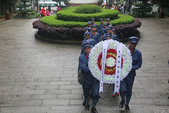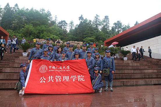 4月29日下午,全体学员怀着肃穆的心情,身着红军服,整装列队,向井冈山革命烈士陵园进发。在革命烈士陵园,院长助理、公共财政与政策研究所所长杨宏山教授与土地管理学系张正峰教授作为学员代表向长眠在井冈山的革命先烈敬献花圈。