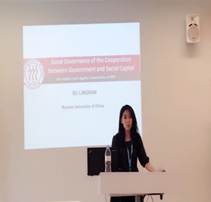 几位同学也就各自的研究进行了展示。博士生石晋昕作了题为“The Innovation of Urban Governance from the Perspective of Whole-of Government: Multicase Study of Four Regions Municipal Hotlines”的汇报,她基于整体政府理论,对国内外市政热线整合的典型治理创新案例进行了比较与总结;博士生黄文浩的汇报主题是“Can All Citizens Participate in Housing Supply Program? Factors Influencing Migrant Workers’ Residential Satisfaction in Target Chinese Cities”,他基于公众参与的角度,分析了农民工住房满意度的影响因素及机制;博士生刘芳做了题为“The Healthcare Relative Weight Payment System in Germany and Enlightenments to Healthcare Governance in China”的汇报,比较了中国和德国的医疗保险支付方式并分析了其政策启示;博士生吴珊的报告题目为“Fiscal Sustainability: International Comparison and Policy Enlightenments”,她对代表性国家财政可持续性状况进行了比较研究,并提出了对中国财政改革的启示;MPA研究生苏泠然的报告主题为“Good Governance of the Cooperation between Government and Social Capital: the Validity and Legality of the Construction of PPP”,她从有效性与合法性角度分析了中国政府推行PPP面临的挑战及发展方向。