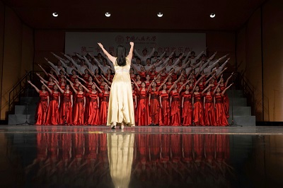 比赛开始,我院合唱代表队女生身着红色长裙,男生穿着整齐的西装,成为如论讲堂中一道亮丽的风景线。他们精神饱满抖擞,用完美洪亮的歌声,展现了两个多月以来练习、磨合的成果,讲述着《我和我的祖国》的故事。