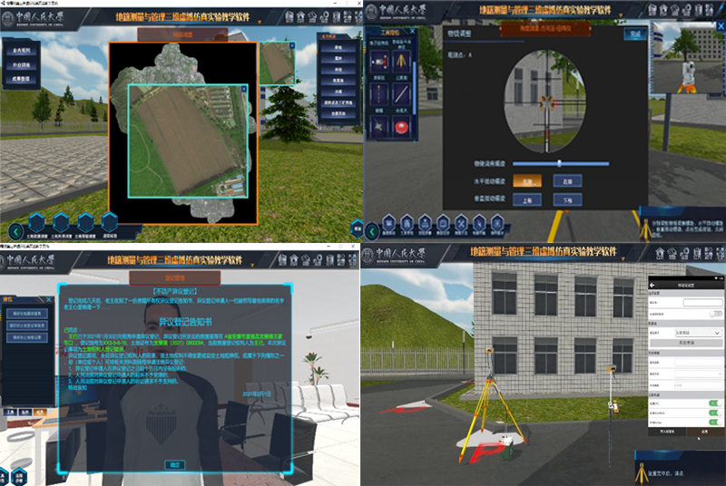 为了全流程展现“调查+测量+绘图+登记”的地籍测量管理全过程,提升学生运用仪器、使用软件和案例分析的全流程综合能力,本项目共开发“地籍调查”、“地籍测量”、“图件绘制”和“登记管理”4大模块,共计11个子模块,涉及3类调查、5种测量方法、2个图件绘制、1类登记,涵盖32个知识点、500余个人机交互点,4年内共支撑80个实验教学学时,服务学生人数达873人,全过程、全要素和全知识点地实现了地籍测量与管理“调查+测量+绘图+登记”的全方位系统实验教学。此外,满足了学生自我创造情景和开发剧情的虚拟创造要求,更涵盖了未来学科发展的弹性和变化,通过“一虚一实”、“自我编剧”和“自动批改”,基于智慧云、时空云和实景三维建模技术定制了针对性拓展教学模块,为地籍调查、地籍测量、图件绘制、登记管理等案例提供全还原360度三维实景场地,使学生在每个实验学习都具备虚拟仿真辅助,更能自主探索、自我构建、自我开发个性化虚拟情景。
