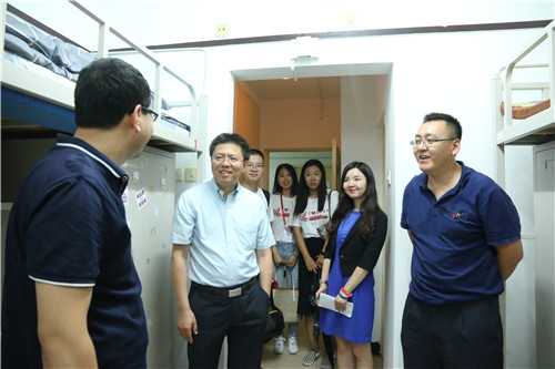 晚上6时,学院院长杨开峰、党委副书记徐景阳、学生事务秘书王乔一行先后到品园5号楼、知行1号楼看望两年制硕士新生及MPA新疆班的同学。杨开峰详细询问他们的家乡、本科院校和工作单位,希望同学们要尽快适应在京的新生活,做好快节奏学习的思想准备。学院党委书记李家福、副院长丰雷,本科新生班主任张秀智、张跃松、段晖、赵益民,党务秘书张世闯一行先后前往知行4号楼、2号楼看望本科新生。李家福向同学们介绍学院的基本情况,亲切询问他们入校第一天的感受,叮嘱他们在北京学习和生活期间要加强自我管理,争做一名德智体美全面发展的当代大学生。