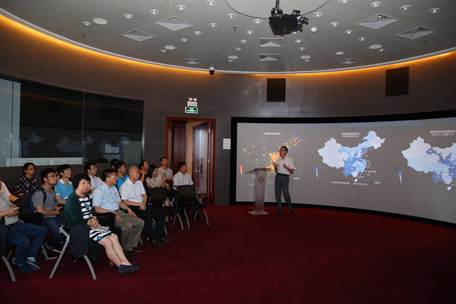 随后,我院教师陪同调研组一行参观了公共政策实验室,展示了大数据实时词频分析和UNISOL仿真模拟等辅助决策系统。