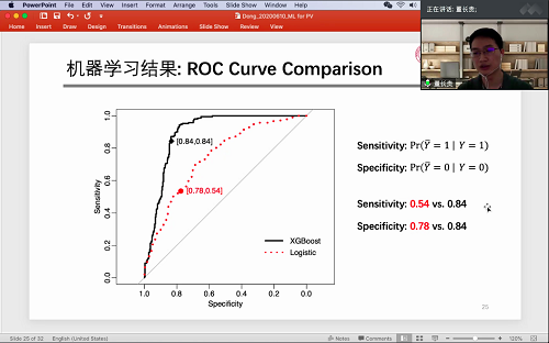 XGBoost是极端梯度提升(eXtreme Gradient Boosting)模型的简称,源于梯度提升框架,但是其预测性能更优、训练速度更快。此外,本研究的因变量为非连续的二分变量,更符合决策树的概念。因此,对于该研究而言,XGBoost方法具有较好的适用性。董长贵老师还讲解了XGBoost方法的基本原理:一是要控制预测结果和实际观测值的差距,将损失函数最小化;二是要控制树形结构的复杂程度,因为模型复杂程度越低,其外推效果会越好。