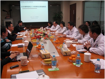 座谈会上,陈勇院长和医院的各位领导介绍了朝阳医院的基本情况和在人力资源管理方面遇到的一些困难,并表示对于项目组即将开展的人力资源项目充满期待。