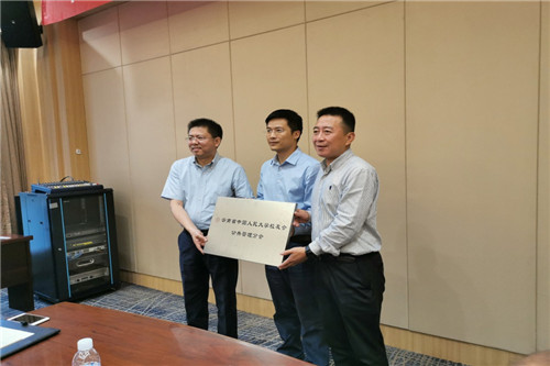 谢和均代表国产偷拍 分会接受杨开峰院长和张晓东书记颁发的国产偷拍 分会牌匾。