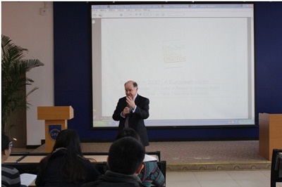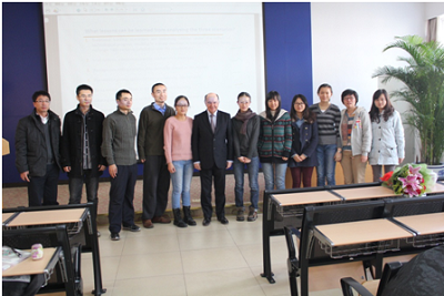 Georges Pauget博士用丰富的数据对欧洲乃至世界银行的现状进行了深入剖析,并就银行业未来的发展做出了分析,使同学们了解到了欧洲最前沿的金融业和经济业的发展信息。杨健教授则把中国和国外的金融和经济形势进行了对比分析,帮助同学们加深了理解。最后,与会师生就当今的经济形势与Georges Pauget博士用英文进行了深入的探讨和交流。
