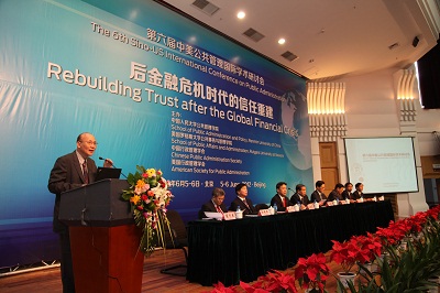 美国行政管理学会会长K. Tom Liou教授在致辞中表示,受持续的经济衰退、高失业率、公共服务项目削减等因素影响,在许多国家民众对政府的信任和对公共服务的信心下降。在这一背景下,他认为对本届研讨会的主题“后金融危机时代的信任重建”的探讨既富有学术价值又富有现实意义。