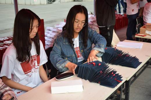早上五点四十分,负责相关迎新工作的同学们就来到了明德广场,整理朋辈信、摆放校园明信片、调试相机,提前做好迎新准备,同时熟悉迎新流程。工作人员整装待发,等待新生的到来。