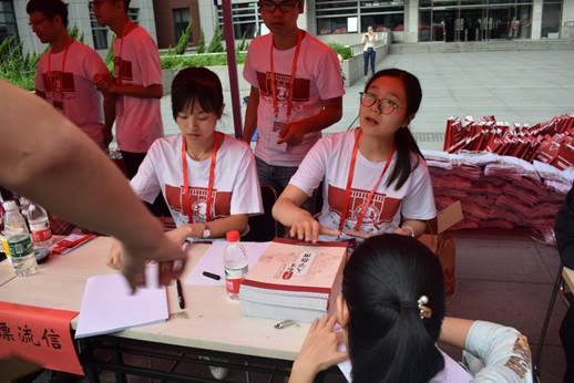 不久,便有新生陆续前来报到。扫码注册、发放物资、领取朋辈信、寄取漂流信……工作人员们各司其职,有条不紊地进行着各自的工作,热心地为新生与家长们提供服务,耐心地解答他们的问题。