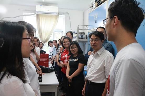 下午五时许,白天明德广场的迎新工作接近尾声,学院领导兵分两路,看望了安顿下来的新生。