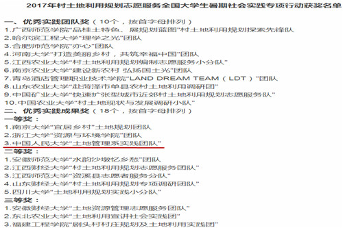 附:《关于公布2017年村土地利用规划志愿服务全国大学生暑期社会实践专项行动获奖名单的公告》