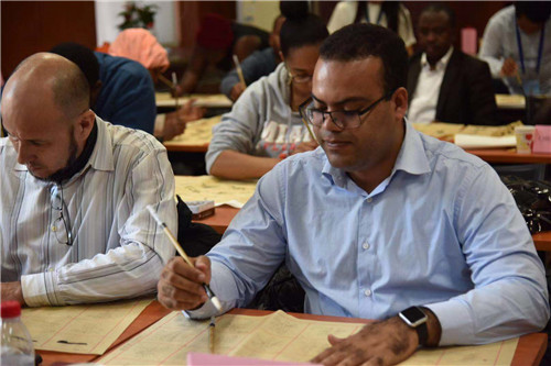 在课堂讲座方面,本次培训汇聚了强大的师资队伍,我院许光建、董克用、刘颖、刘鹏、秦波、王宏伟、马亮、张磊等教授从理论和实践层面向学员全方位介绍了中国公共管理和公共政策的情况,内容涵盖了中国基本政治制度、中国社会保障制度、中国政府间财政关系、中国的风险监管以及中国的“互联网+政务建设”等内容。授课内容充实且形式新颖的讲座得到了学员的一致认可,纷纷表示收获颇丰。在中国传统文化方面,培训班专门请到了中国工艺美术协会会员郭业斌老师为学员带来了中国书画文化与艺术的讲座和现场体验,让学员通过自我实践的方式近距离感受了中国传统书画文化。