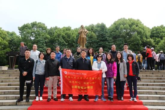 为提升党员师生党性修养,增强师生理想信念教育,在“五四”运动百年之际、“五一”国际劳动节前夕,由学院党委和学院工会共同组织,学院党委书记李家福带队,学院党委副书记、纪委书记孙柏瑛,学院副院长崔军,学院党委副书记、工会主席徐景阳等师生二十余人赴湖南韶山、长沙开展“不忘初心、牢记使命”的主题教育培训。