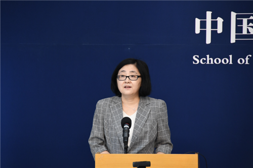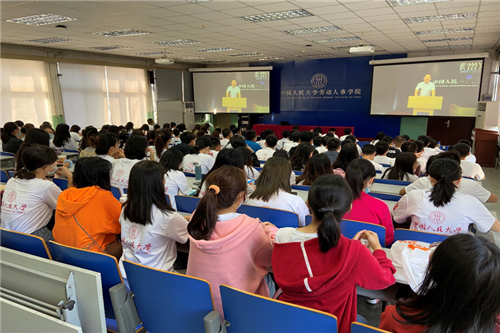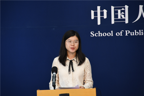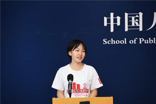 2020级本科5班杨思琪作为本科新生代表发言,首先她回顾了初入心驰神往学府的激动与兴奋,再次,结合“远见、求实、创新、奉献”的院训思考了如何做一名人大公管人。“要看银山拍天浪,开窗放入大江来。”她表示在未来的四年里会不断挑战,敢想敢做,将自己青春的色彩与人大、与公管学院深深地融为一体,用实际行动展现人大精神。
