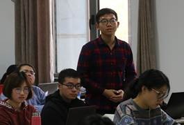 郑连虎进行主题汇报,内容分四部分展开。报告的第一部分是数学语言。他首先区别了“用户的学”和“专家的学”,并赞成我们大多数人应该是“用户的学”。也就是说,将数学、统计学当作一种工具去用。他认为应将基本的数学知识与讲故事结合起来,可以便于理解。报告的第二部分是问题导向。他认为,我们要着眼于问题,而不是为了应用某种方法。先定问题再谈方法,研究问题决定了研究类型和研究方法。最后是方法适用,我们要思考为什么某些方法可以用来研究某类问题。报告的第三部分是数据准备。郑连虎就自己的调研经历分析了问卷调查需要注意的事项,并介绍了统计年鉴、调查数据库等二手数据库。报告的第四部分是软件操作。首先是辅助学习,要了解为什么这样设置参数。其次是练习资源,要学习别人的优秀论文。最后是规范使用,即命令代码、运行日志要留存。在汇报的最后,郑连虎做了整个主题的总结:一是要多看文献,看优秀论文是怎么做的;二是软件要用起来,自己走一遍后才能知道陷阱在哪儿;三是编程思维,要整体设计、稳步推进。