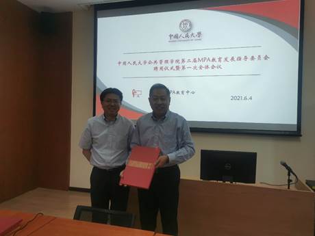 2021年6月4日,我院召开新一届MPA教育发展指导委员会会议,MPA教育中心主任刘鹏教授宣读了我院新一届MPA教育发展指导委员会成员名单,执行院长杨开峰教授、党委书记孙柏瑛教代表学院向新一届MPA教育发展指导委员会全体委员颁发了聘书。新一届MPA教育发展指导委员会全体委员参加会议,会议围绕MPA教育发展的重要议题进行研讨,并形成了若干重要共识。
