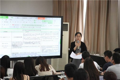 团委书记陈夏老师首先就2017届毕业生就业派遣工作时间表向各位毕业生进行了详细说明,提醒毕业生在办理各种毕业手续时注意好时间截点。陈老师针对不同就业去向毕业生的信息资料采集、就业材料提交、毕业信息核对等重要事项进行了认真的讲解,强调毕业生务必明确自身所需办理的就业手续,并在学校规定的时间内完成。