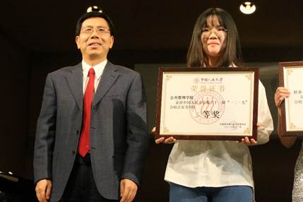 12月9日下午,我校第三十二届 “一二·九”合唱音乐节在明德堂成功举办。我院代表队参赛曲目为《陕北公学校歌》和《天耀中华》,荣获B组三等奖。2017级本科生何春昊担任指挥,2018级本科生王嘉雯担任钢琴伴奏,合唱队伍由陈红、于洋、夏方舟、杨帆、张世闯5位学院老师和2018级全体新生及5名2017级本科同学组成。