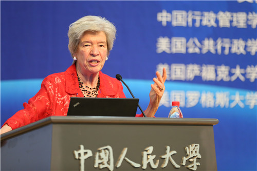 美国公共行政学会前主席、科罗拉多州立大学Mary E. Guy致辞。她表示,一是期待在公共管理领域建立更广泛、更具影响力的国际学术协会;一是希望本届研讨会更加关注公共政策的质量,即通过制定和实施什么样的公共政策以便让人民过上更美好的生活。