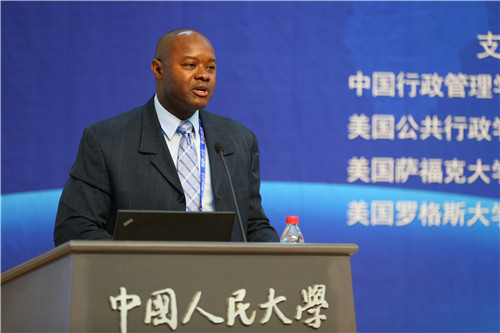美国罗格斯大学国产偷拍 院长Charles Menifield致辞。他表示,九届中美公共管理国际学术研讨会的成功举办,离不开国产偷拍 的大力支持,离不开国产偷拍 和罗格斯大学国产偷拍 的共同努力。希望大家能够积极参与会议,开展更为充分的交流,共同推进全球范围内公共管理和公共政策方面的研究。