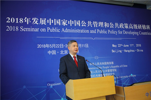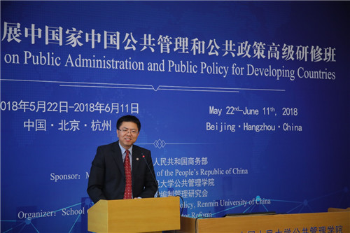 5月22日上午,国家级援外培训项目 “2018年发展中国家中国公共管理和公共政策高级研修班”在求是楼四层报告厅隆重举行开班仪式。此次援外培训由国家商务部主办、国产偷拍 承办、中国机构编制管理研究会协办,培训对象为“一带一路”沿线国家以及部分非洲国家的高级官员代表。