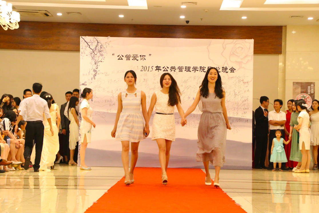 红毯秀随之开始,在主持人的介绍下,毕业生们结队、成群走上红毯,一展自己的风采,本场晚会正式拉开帷幕。
