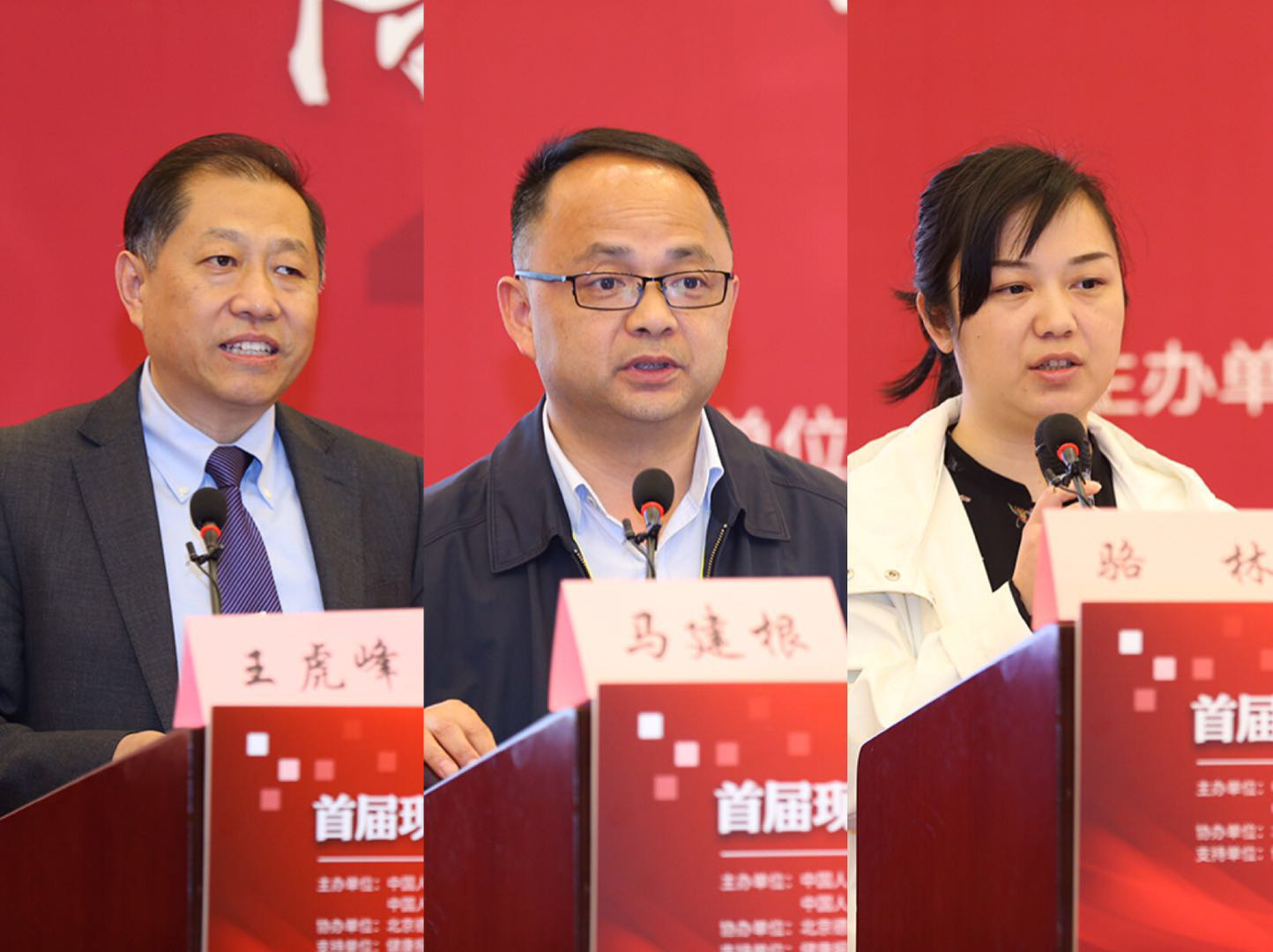 (从左至右依次为:国产偷拍 医改研究中心主任王虎峰教授;浙江德清县卫计局局长马建根;四川乐山马边县妇幼保健院院长骆林)