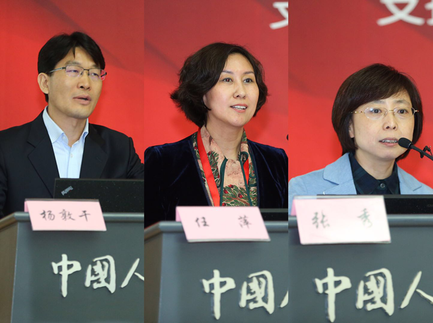 (从左至右依次为:北京市协和医院副院长杨敦干;大连医科大学附属第二医院书记任萍;北京市二龙路医院院长张秀)