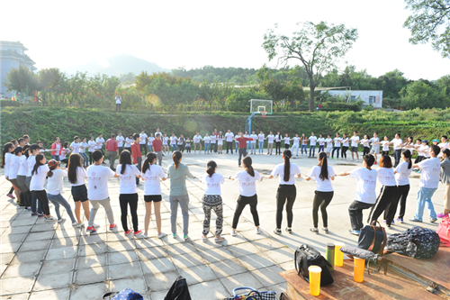 一场小雨之后,上午的天气特别清新。我们的训练开始了,教练带领大家通过做小游戏进行热身运动,各种动作和花絮让现场笑声不断。轻松愉快的氛围让同学们很快熟悉起来,融入到集体中来。