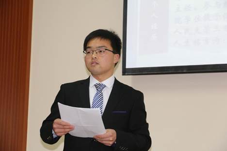 我院党委副书记徐景阳代表学院党委致辞。他表示,研究生会在过去一年里举办了以“公共管理青年说”为代表的一系列活动,取得了令人瞩目的成绩,为学院赢得了良好的声誉,并向每一位为研究生会付出的同学表示感谢。他提出,希望研究生会秉承为学院研究生服务的理念,坚持深入发掘广大研究生同学的需求,展现研究生会在服务同学方面的温度;坚持搭建学院和每一位研究生交流的平台,展现研究生会在思想引领方面的深度;坚持面向最大范围的研究生同学开展活动,提高组活动覆盖面,展现研究生会在联系同学方面的广度;坚持培养一批优秀的学生干部,使他们成为研究生群体中的榜样,展现学生干部队伍的风度。他鼓舞全体研究生会成员继续开创研究生会工作新的辉煌。徐景阳的讲话肯定了我院第一届第一任研究生会的工作,体现了学院党委对研究生会工作的支持,并为研究生会未来的发展指明了新的方向。